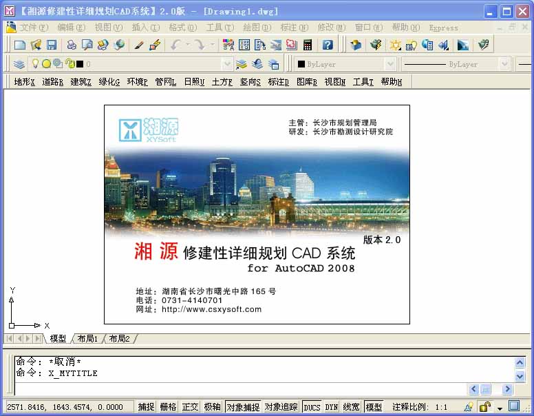 经过了一年多时间的开发,《湘源修建性详细规划CAD系统》2.0版终于正式发布了。本软件是一套基于AutoCAD平台开发的城市修建性详细规划软件,可用于修建性规划设计、修建性总平面设计、建筑总平面设计及园林绿化设计等,包括市政管网设计、日照分析、土方计算、现状地形分析等功能。